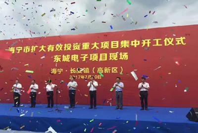2017年7月10日,海寧市擴大有效投資重大項目集中開工儀式在長安鎮高新區舉行。開工儀式的主會場,設于東城電子有限公司“年產3萬套智能存取設備和2500套智慧小屋”項目現場,董事長陳長林代表東城電子有限公司在本次開工儀式上發表講話。